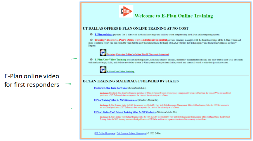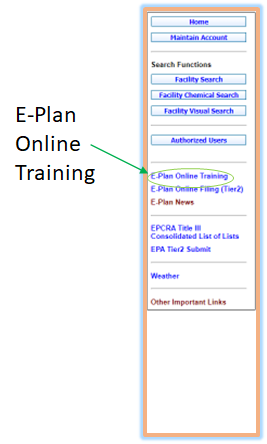 - Click the "E-Plan Online Training" option in the left pane. The Welcome to E-Plan Online Training page will appear.