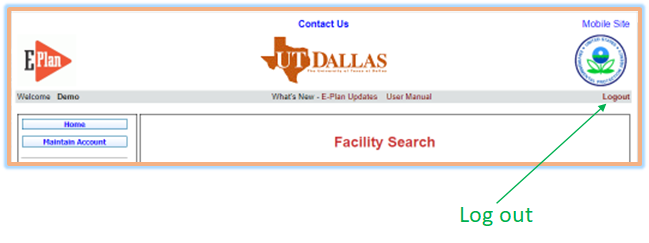 When you are ready to log out of the E-Plan portal, go to the upper right corner of the page and click Logout.