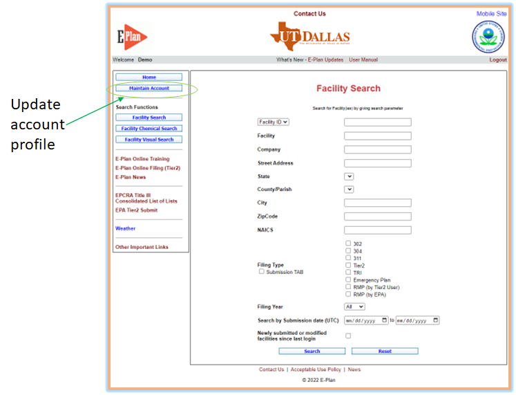 Once logged in, you can update to your account profile by clicking the "Maintain Account" button.
